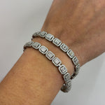 Eleganza senza tempo, il bracciale Angelica presenta un design sofisticato con zirconi baguette incastonati su una base in argento 925 di alta qualità. Il taglio quadrè dei zirconi conferisce al bracciale un fascino geometrico e moderno, mentre il raffinato trattamento in argento assicura lucentezza e resistenza. Inoltre, il bracciale è completamente privo di nichel, rendendolo adatto anche per pelli sensibili.