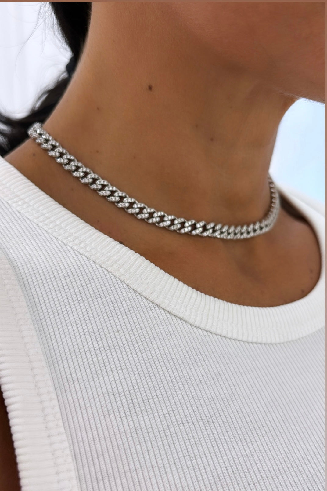 Disponibile in unica colorazione: Silver, questo choker è pensato per essere indossato con stile e classe. La misura è standard e non regolabile, perfetta per un effetto aderente al collo.