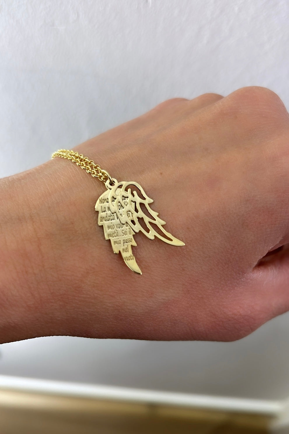 Con il suo design ispirato all'angelo, questa collana è perfetta per chi cerca un accessorio che rappresenti la bellezza, la spiritualità e la protezione, aggiungendo un tocco di luminosità e raffinatezza al tuo look.