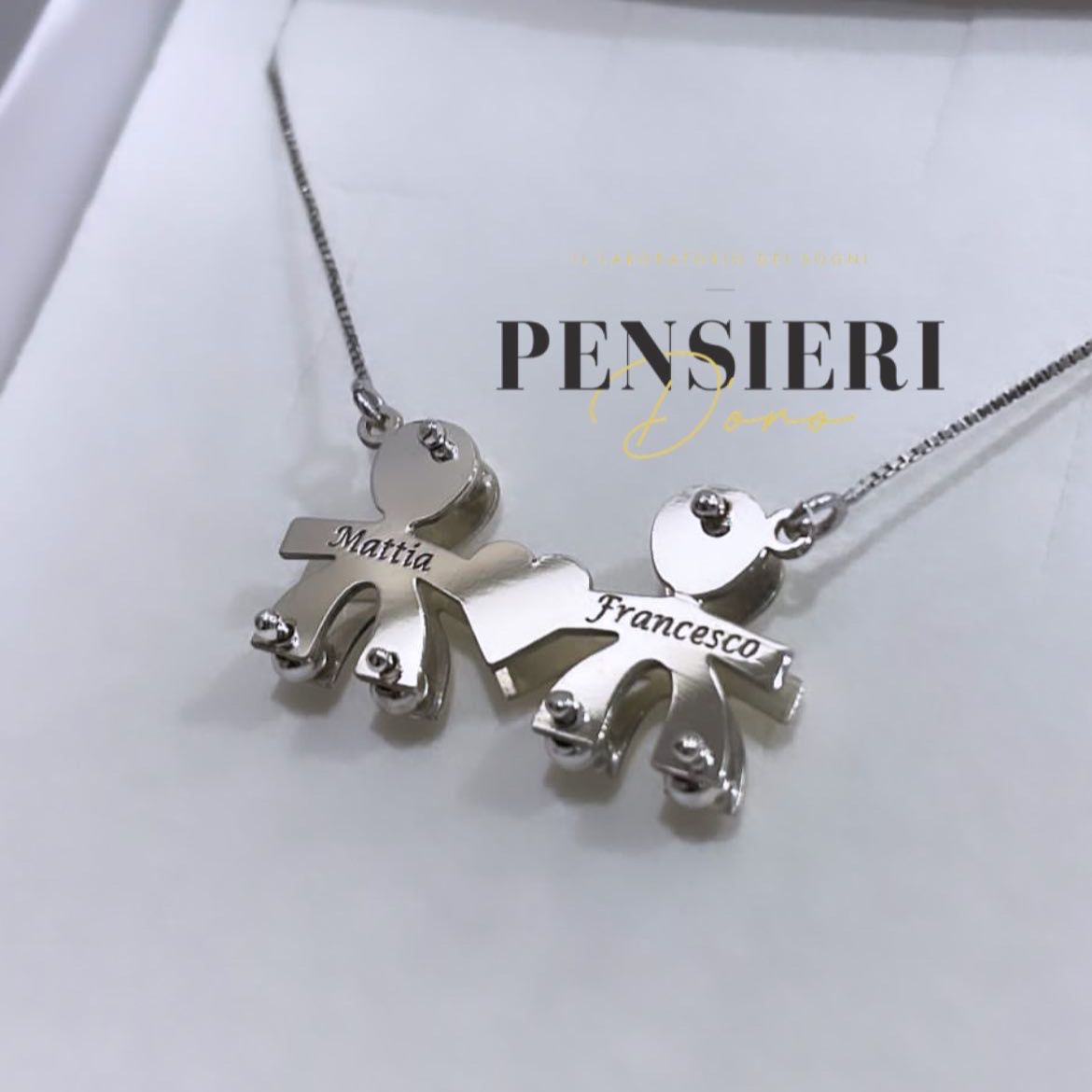 La Collana Bebè è un gioiello delicato e affettuoso, perfetto per celebrare l'arrivo di un nuovo piccolo. Realizzata in argento 925, questa collana può essere personalizzata con il bebè maschietto o femminuccia a scelta, e con una incisione speciale per renderla ancora più unica e significativa.
