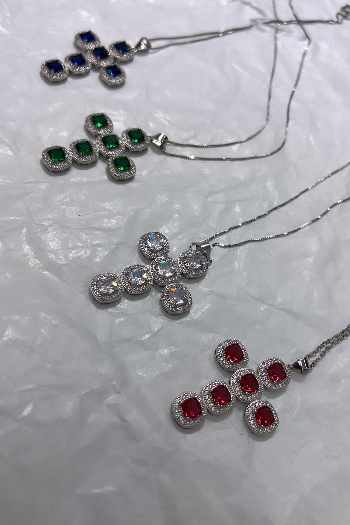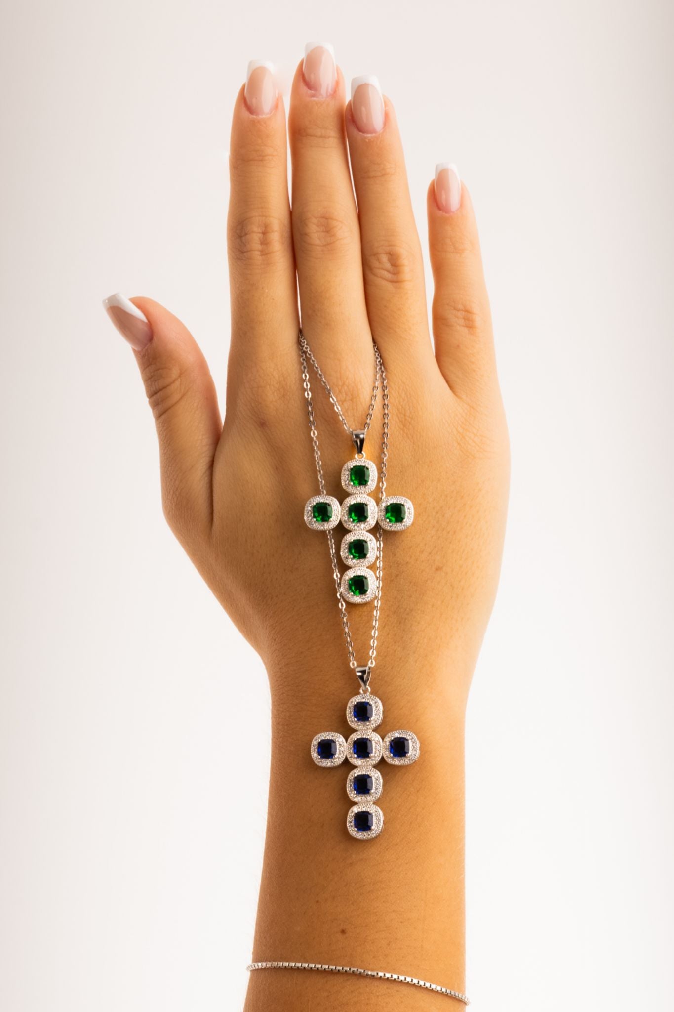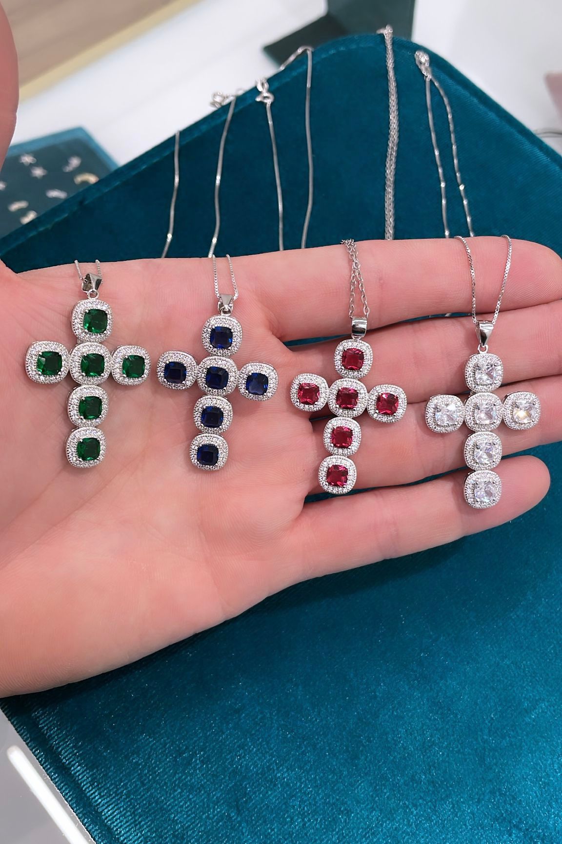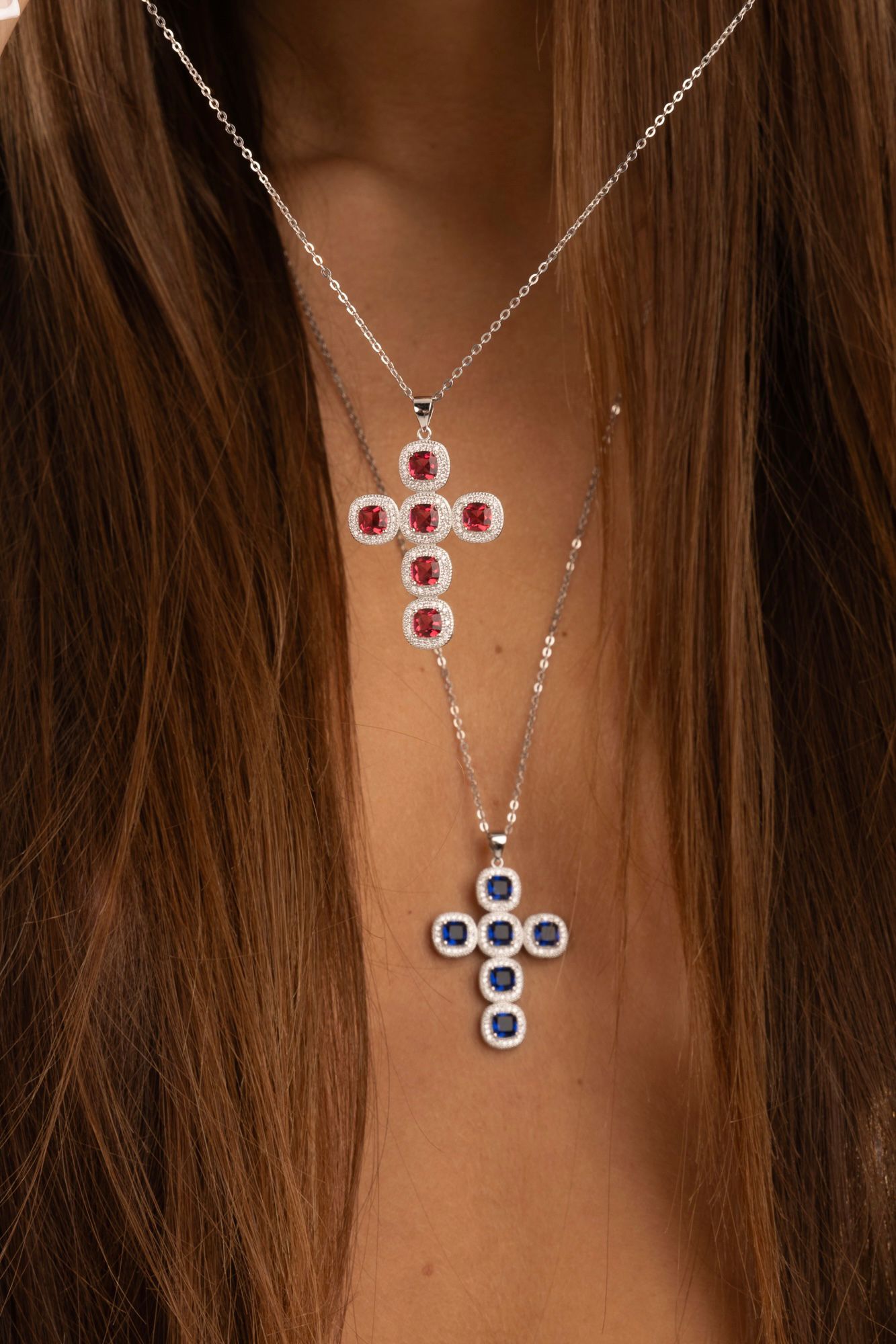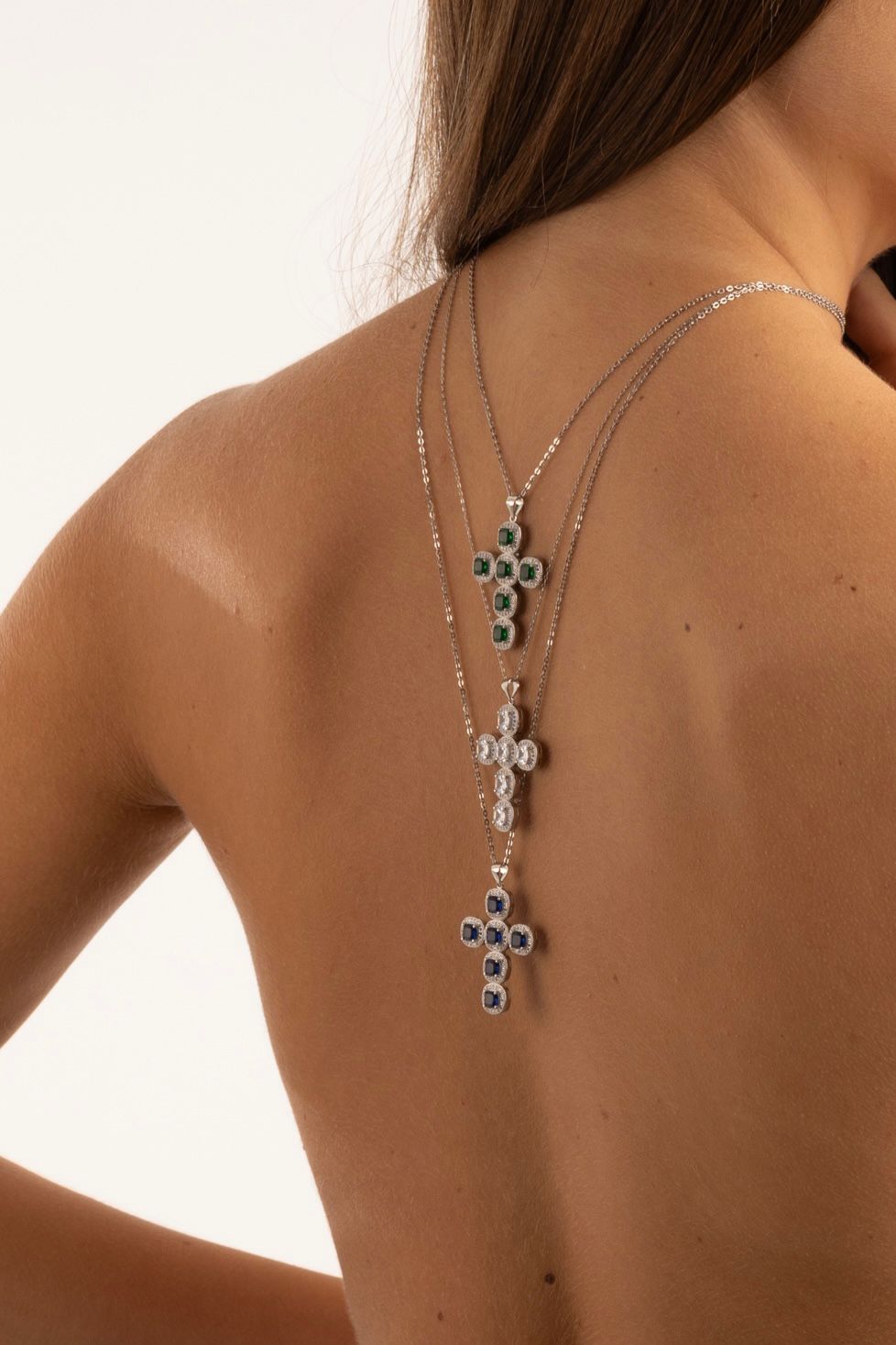 Collana Croce Georgina in Argento 925 con Zirconi e Pietre Preziose