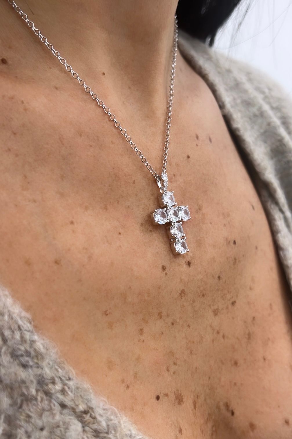 - Croce arricchita con zirconi, che aggiungono un tocco di brillantezza e glamour al gioiello