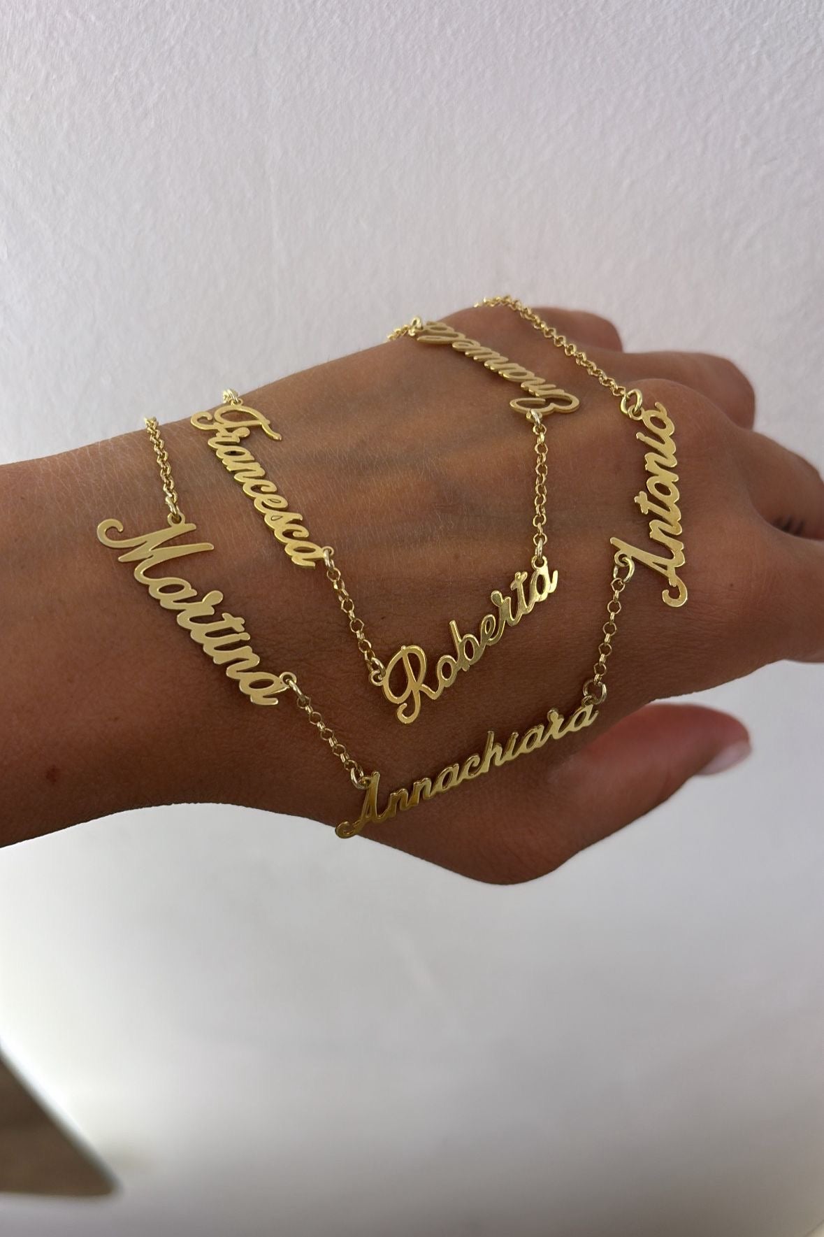 Crea un gioiello unico con la Collana MultiNome in Argento 925, completamente personalizzabile. Scegli i nomi che più ti rappresentano e il colore che preferisci: Silver, Gold o Rosè.