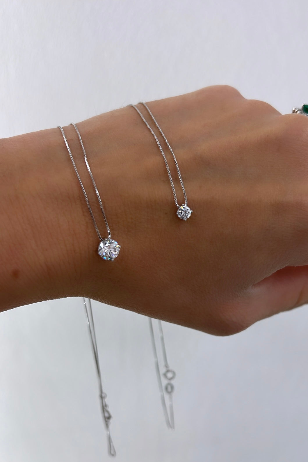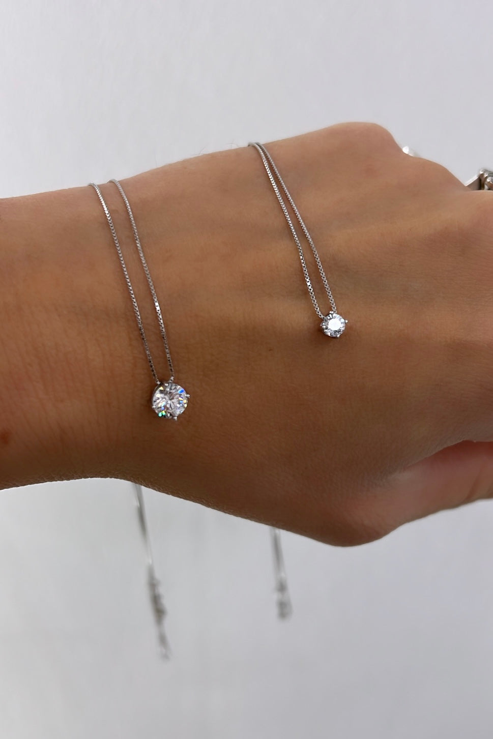 Realizzata in argento 925 di alta qualità e arricchita da un brillante zircone centrale, questa collana cattura la luce in modo discreto, creando un effetto scintillante che non passa inosservato.