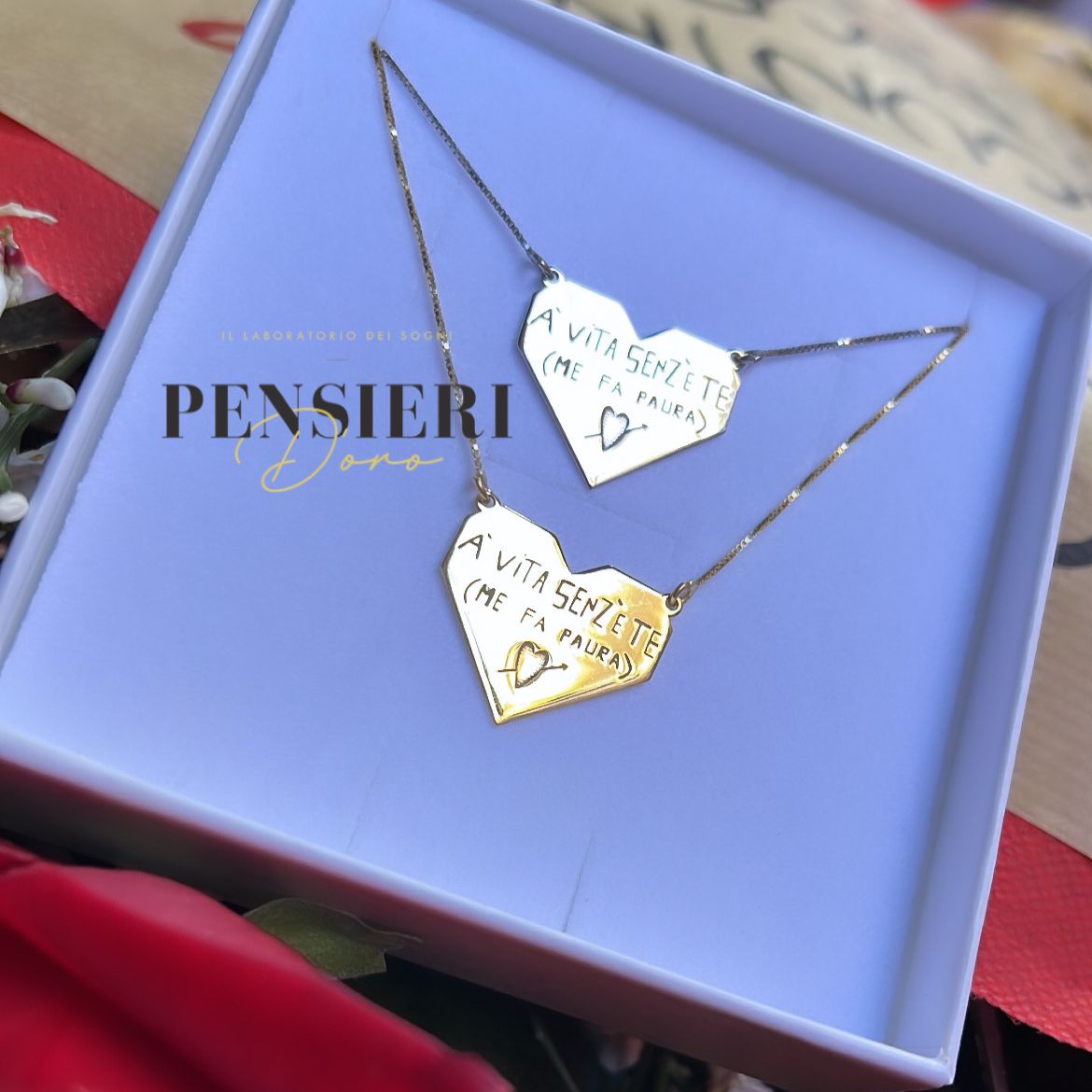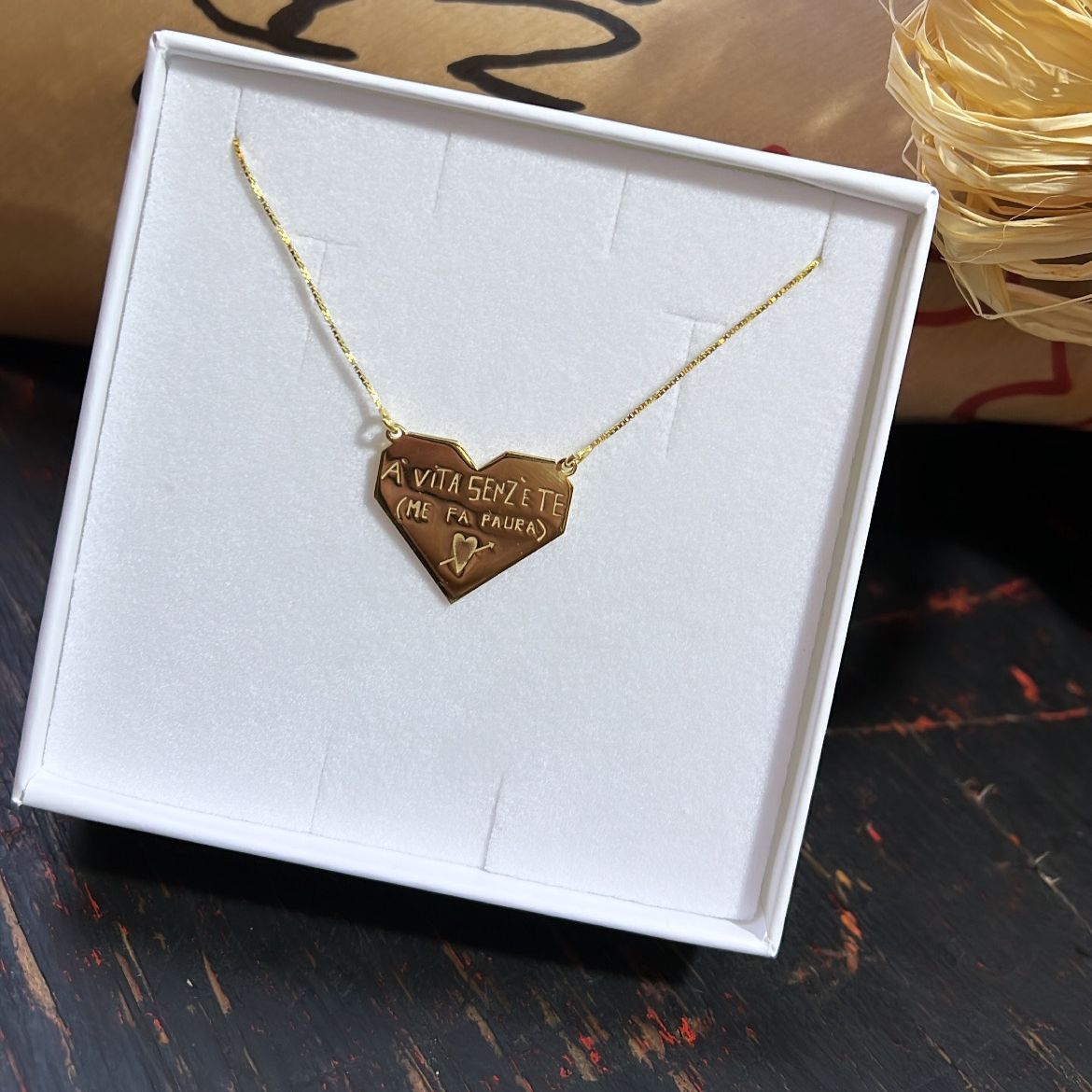 Ispirata allo stile unico e inconfondibile del testo di una canzone famosissima di Rocco Hunt, questa collana è pensata per chi vuole aggiungere un tocco di personalità al proprio look. Realizzata con materiali di alta qualità, è personalizzabile nel colore che preferisci, permettendoti di creare un gioiello che rispecchia appieno il tuo stile.