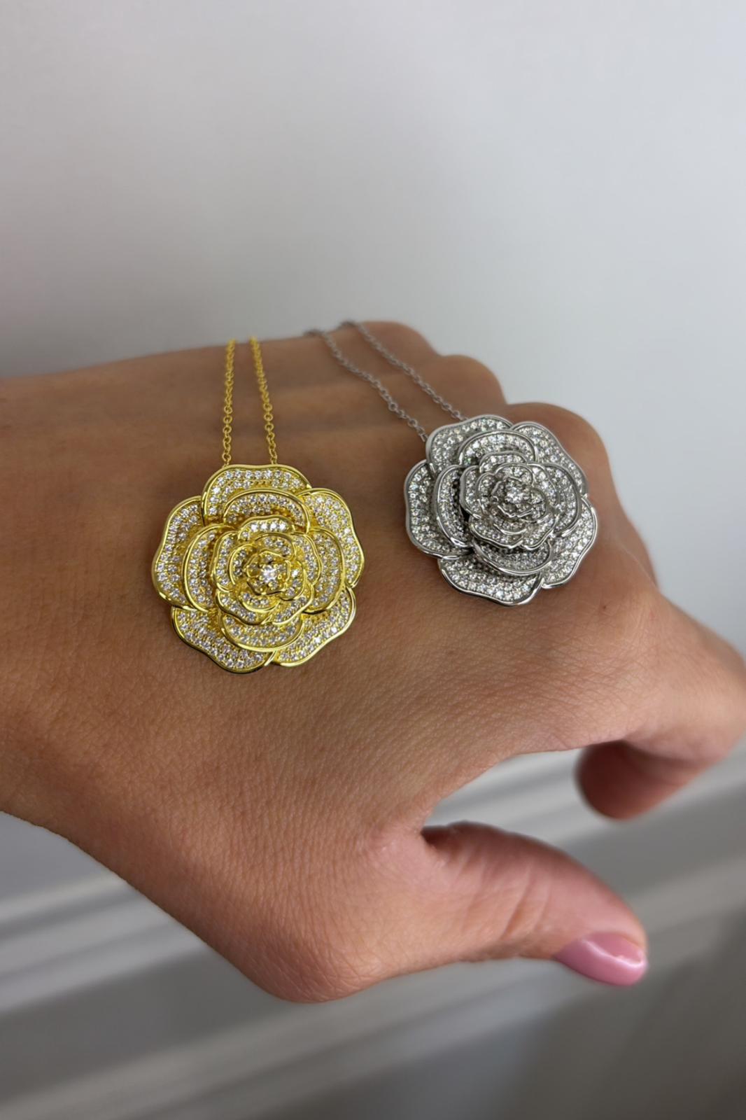 La collana Rosa Petali Big rappresenta una fusione perfetta tra eleganza e originalità. Realizzata in argento 925, questa collana è arricchita da zirconi che aggiungono un tocco di brillantezza e luce. Il design a petali, ampio e delicato, cattura la bellezza di una rosa in piena fioritura, simbolo di raffinatezza e femminilità.