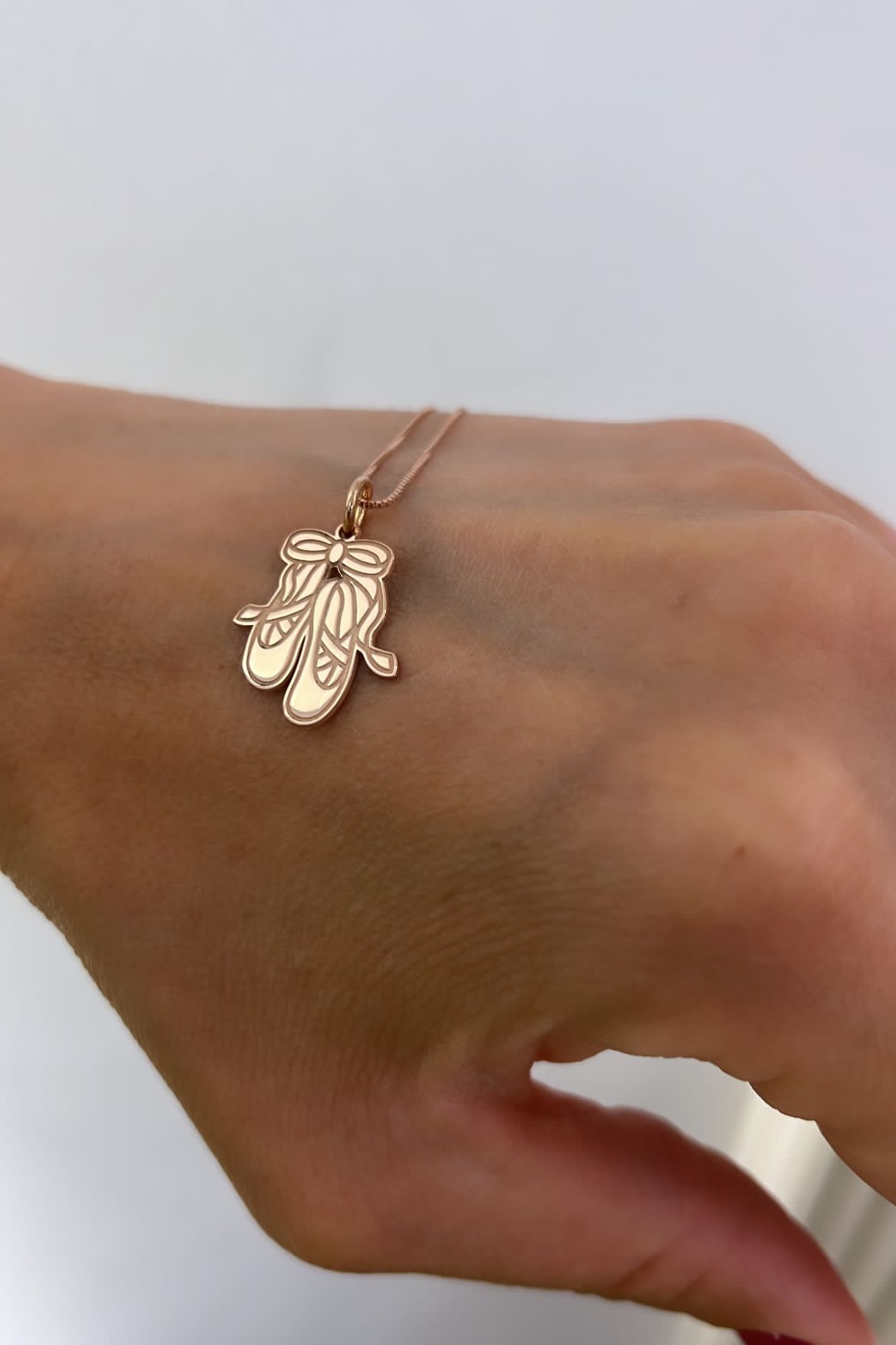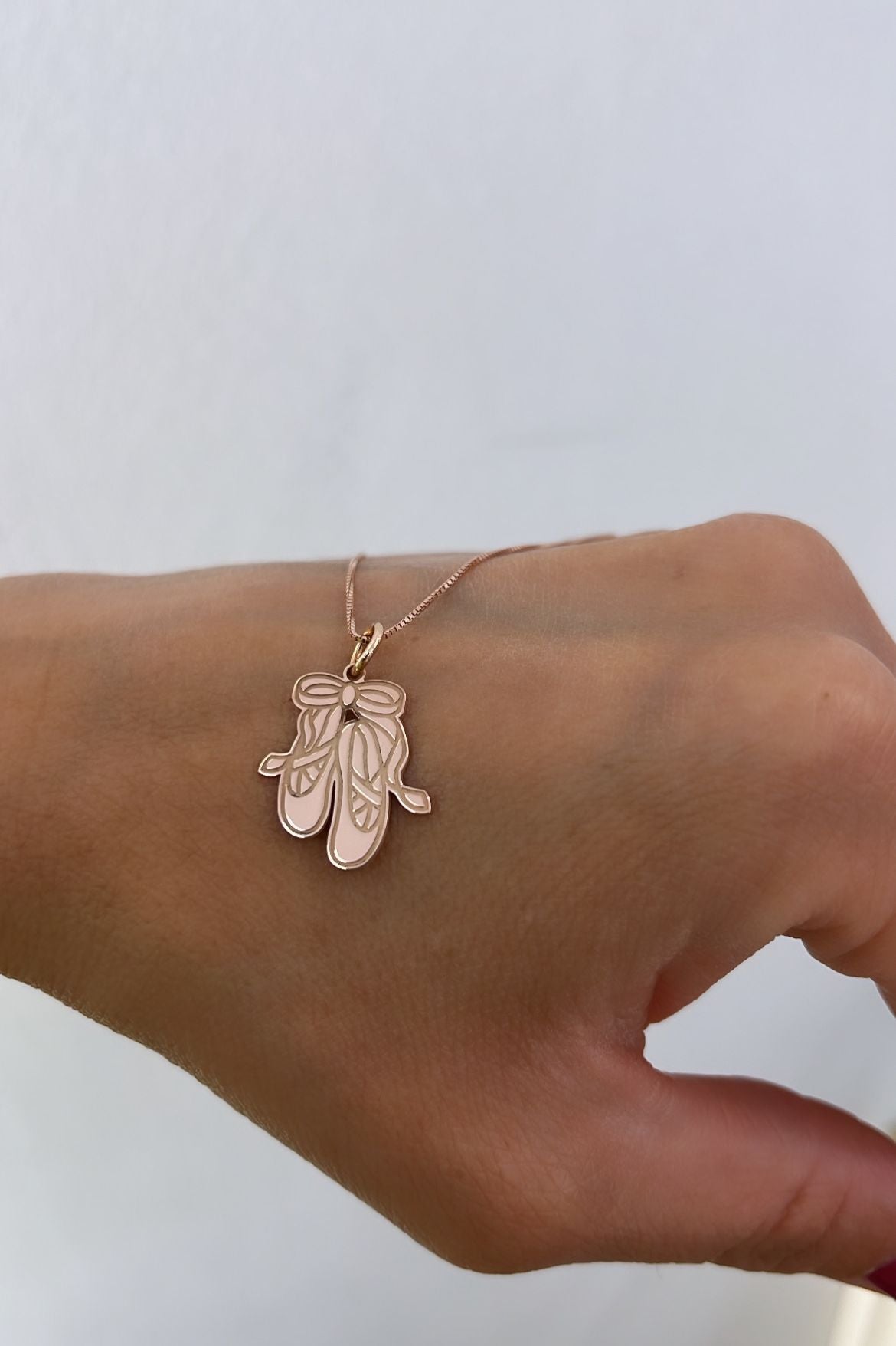 Con il suo pendente a forma di scarpette da ballerina, questa collana è un omaggio elegante alla bellezza e alla leggerezza del mondo della danza.