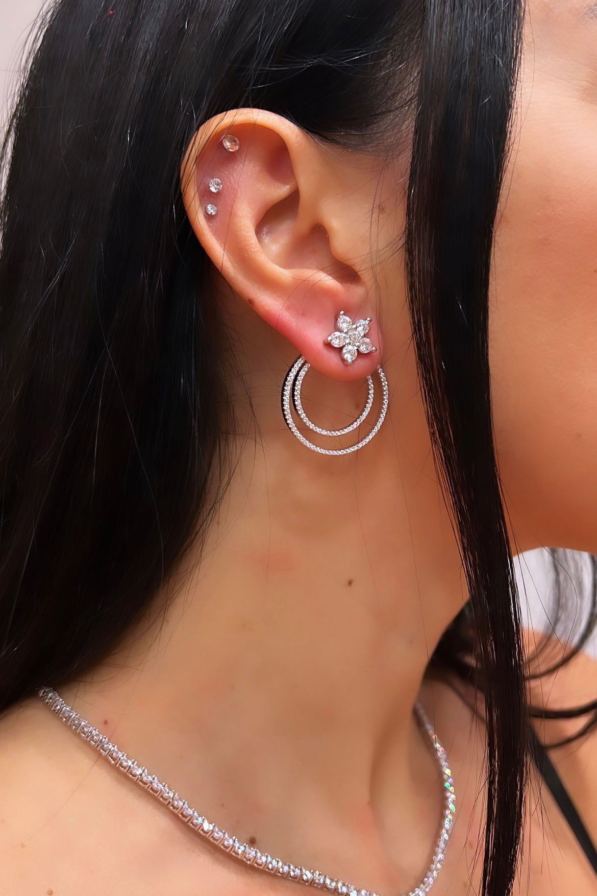 L'orecchino Magical Flowers & Magic è un pezzo versatile e affascinante, realizzato in Argento 925 e impreziosito da zirconi brillanti. Questo innovativo design offre la possibilità di indossare due orecchini in uno: il fiore delicato può essere indossato da solo, oppure combinato con il cerchio per un look più audace e sofisticato.