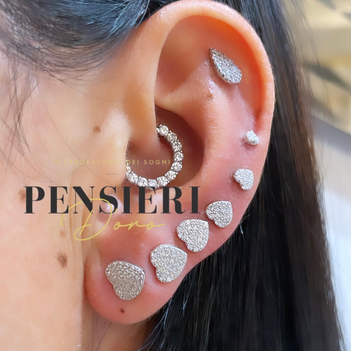 Il loro cuore, impreziosito da un effetto degradé di zirconi, sfuma delicatamente dal centro verso l'esterno, creando un gioco di luci che cattura l'attenzione.