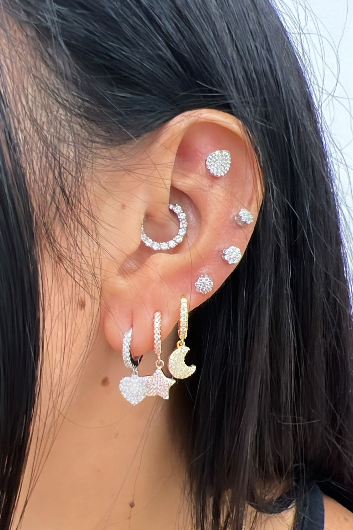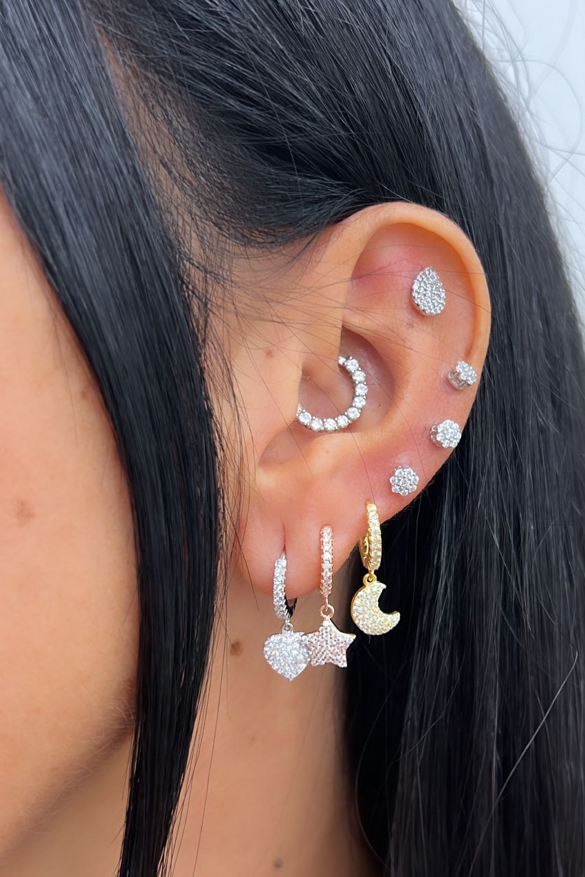 Disponibili nelle varianti: Quadrifoglio, Stella, Cuore, Croce, e Luna, questi orecchini aggiungono un tocco di luminosità e personalità al tuo look.
