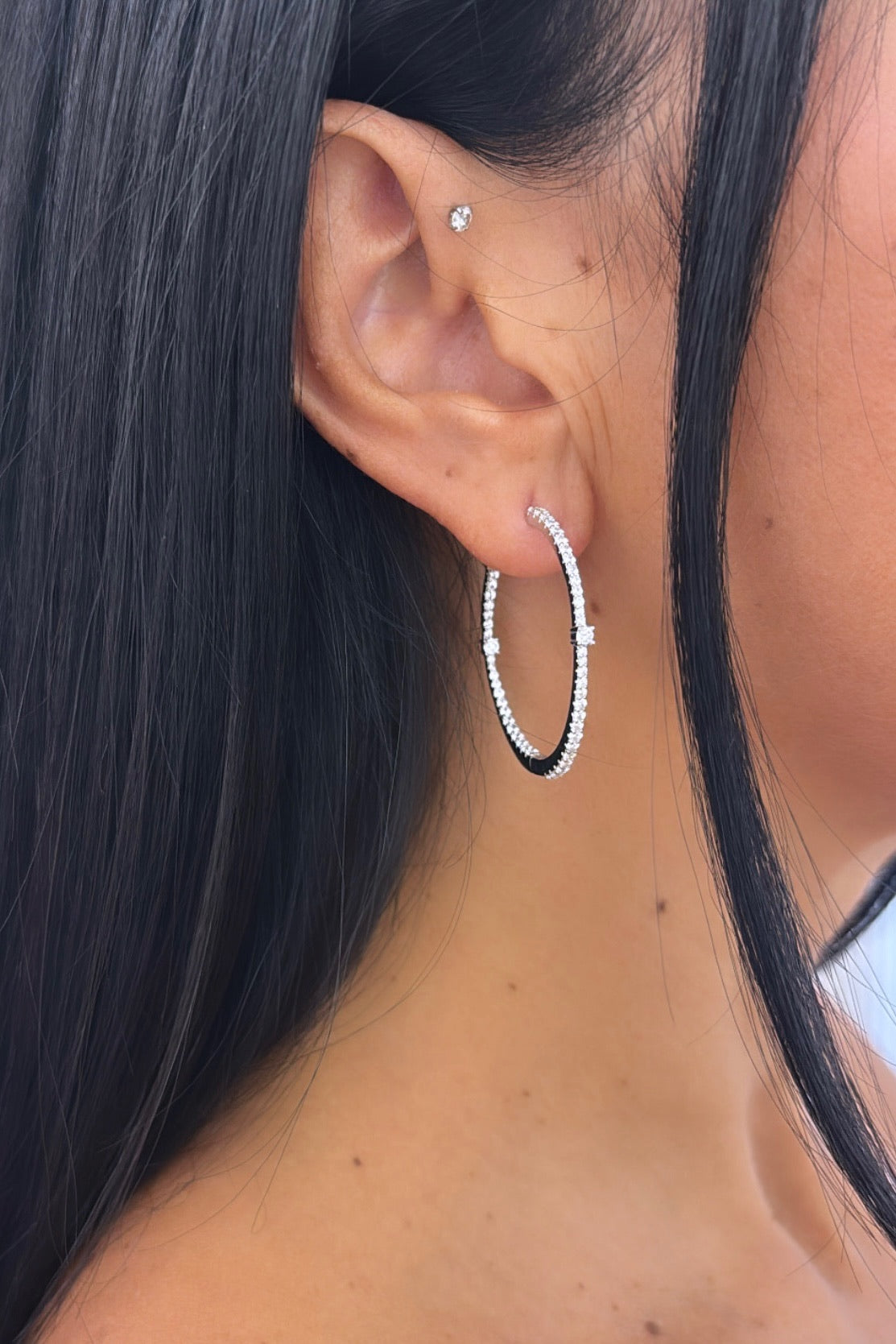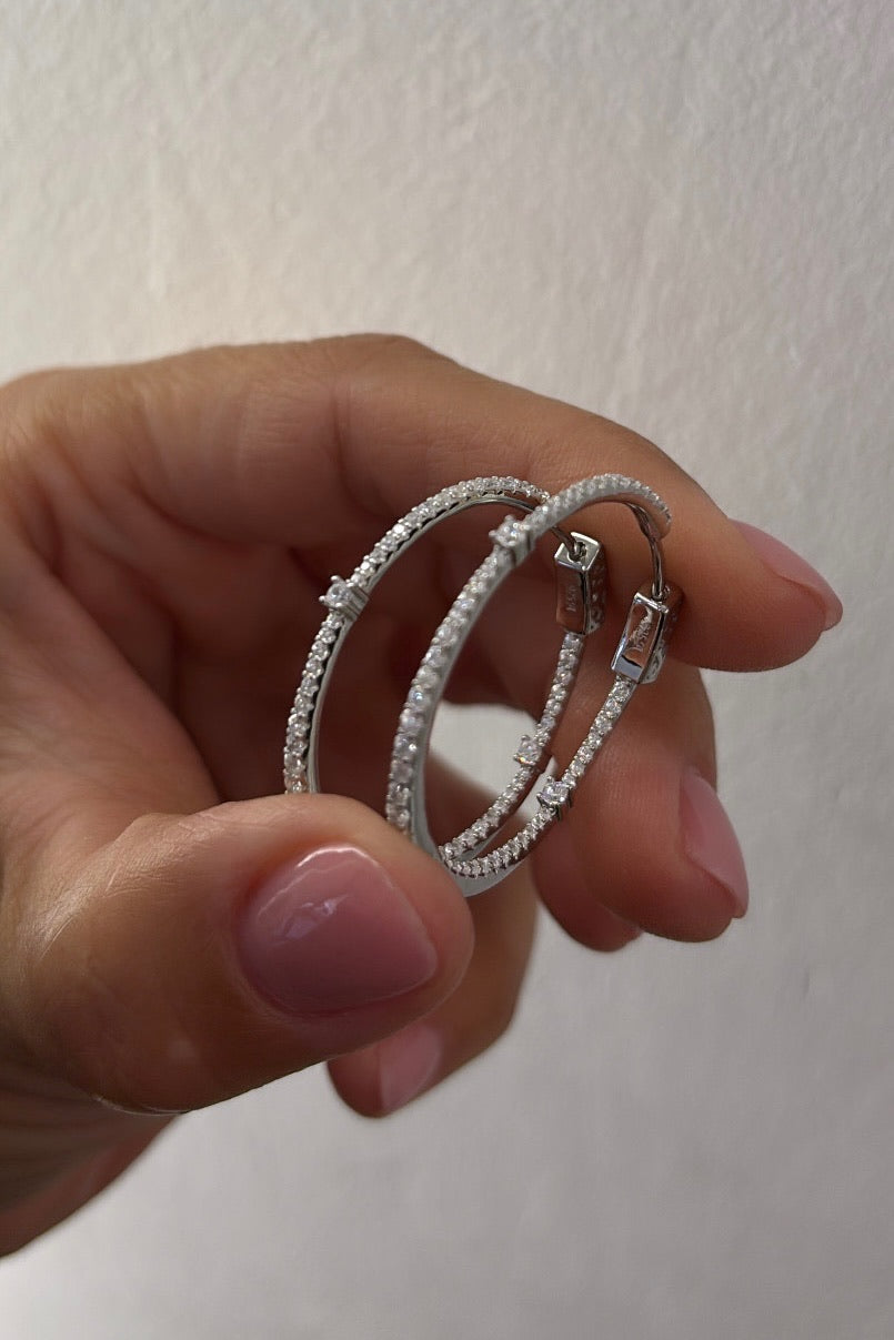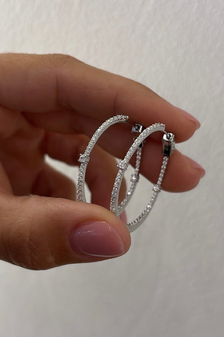 Cerchi in argento 925 con zirconi incastonati e un zircone centrale rialzato che cattura subito lo sguardo.