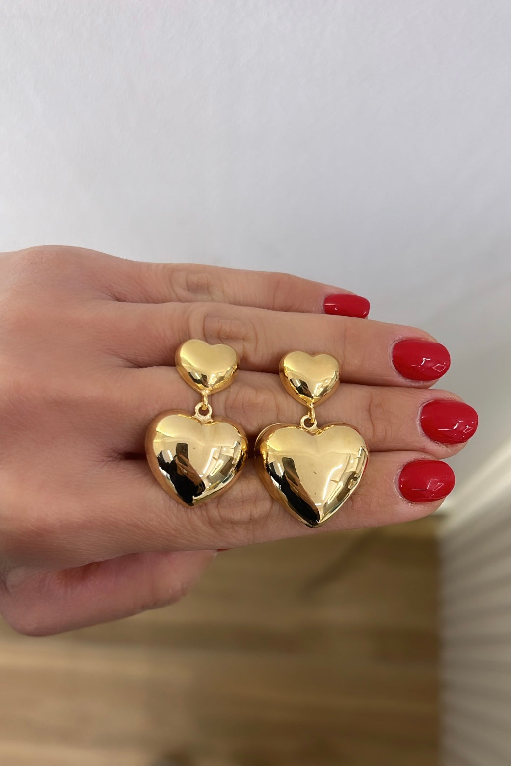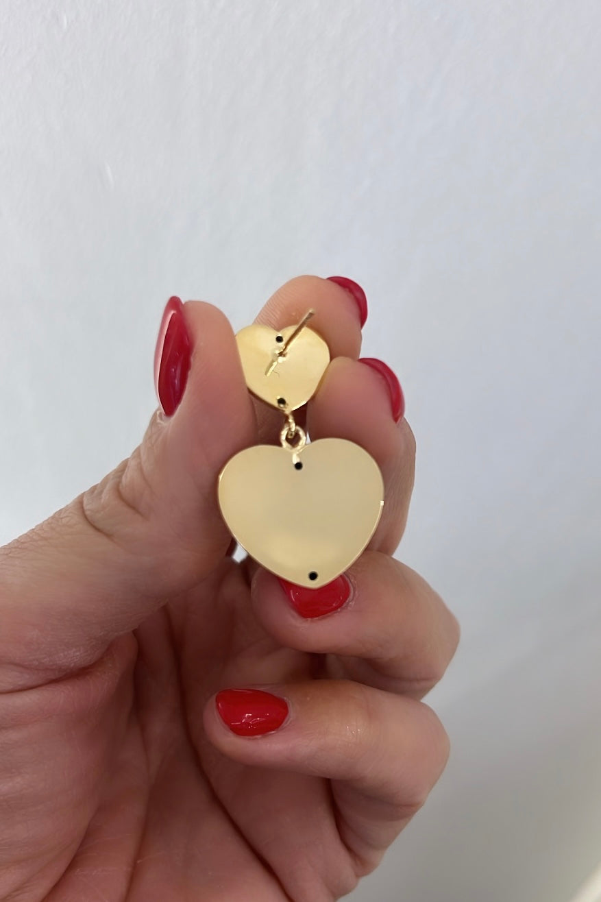 Scopri l'eleganza dell'Orecchino Doppio Cuore in Argento 925 Gold, realizzato in elettroformato per garantire una finitura perfetta e duratura.