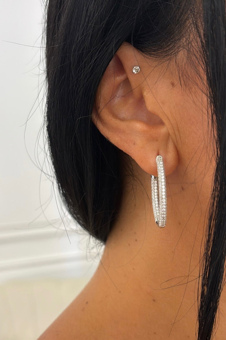 Eleganza senza tempo con un tocco di originalità: gli orecchini Mira uniscono la raffinatezza dell’Argento 925 alla brillantezza dei zirconi, in una delicata forma ovale che reinterpreta il classico cerchio con stile.