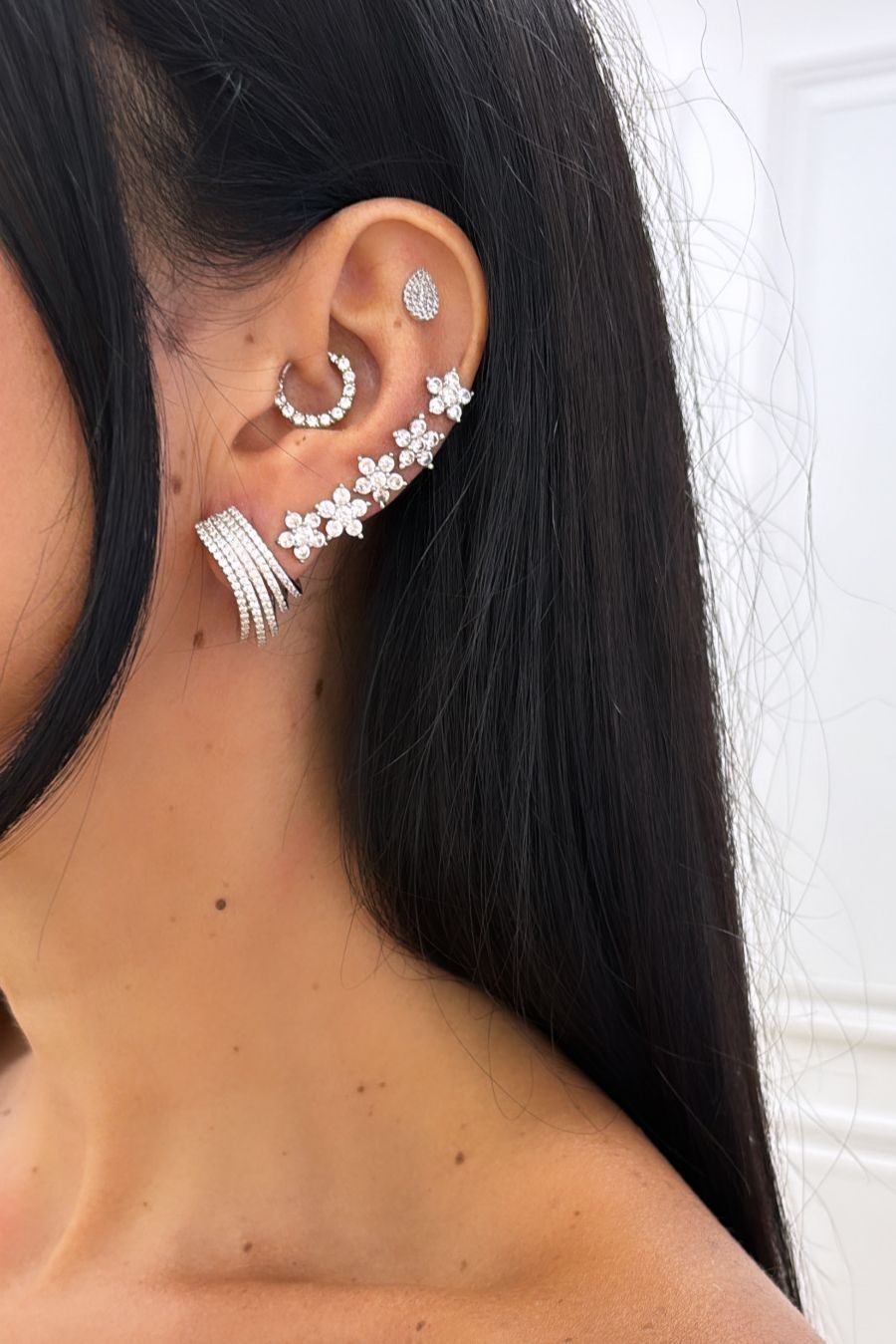 L'orecchino Onda in Argento 925 è un elegante accessorio che unisce la luminosità degli zirconi alla fluidità di un design ispirato alle linee sinuose delle onde. La sua forma raffinata e la brillantezza dei zirconi lo rendono perfetto per aggiungere un tocco di eleganza discreta a ogni look.