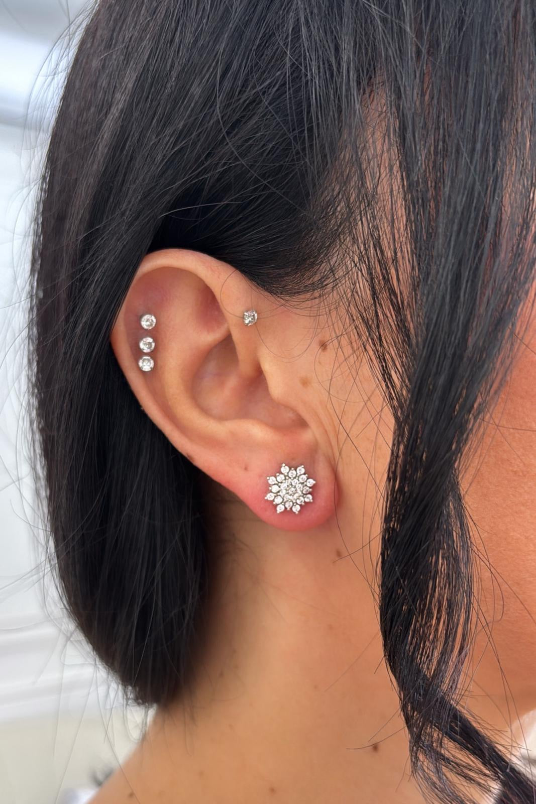 Lasciati incantare dal design raffinato dei nostri orecchini Snow, ispirati alla magia dei fiocchi di neve.