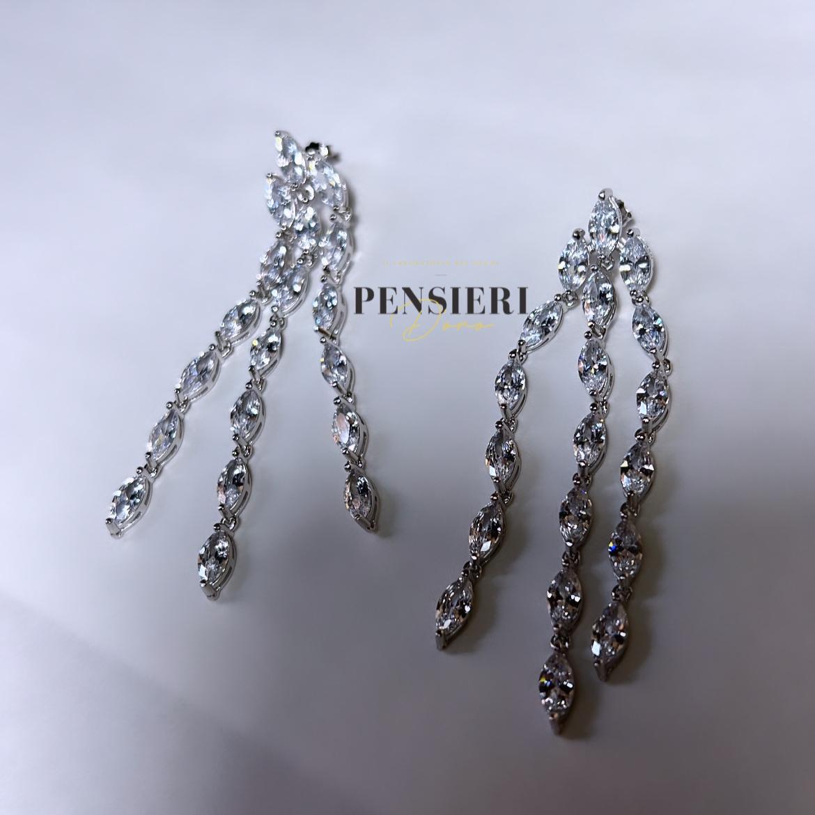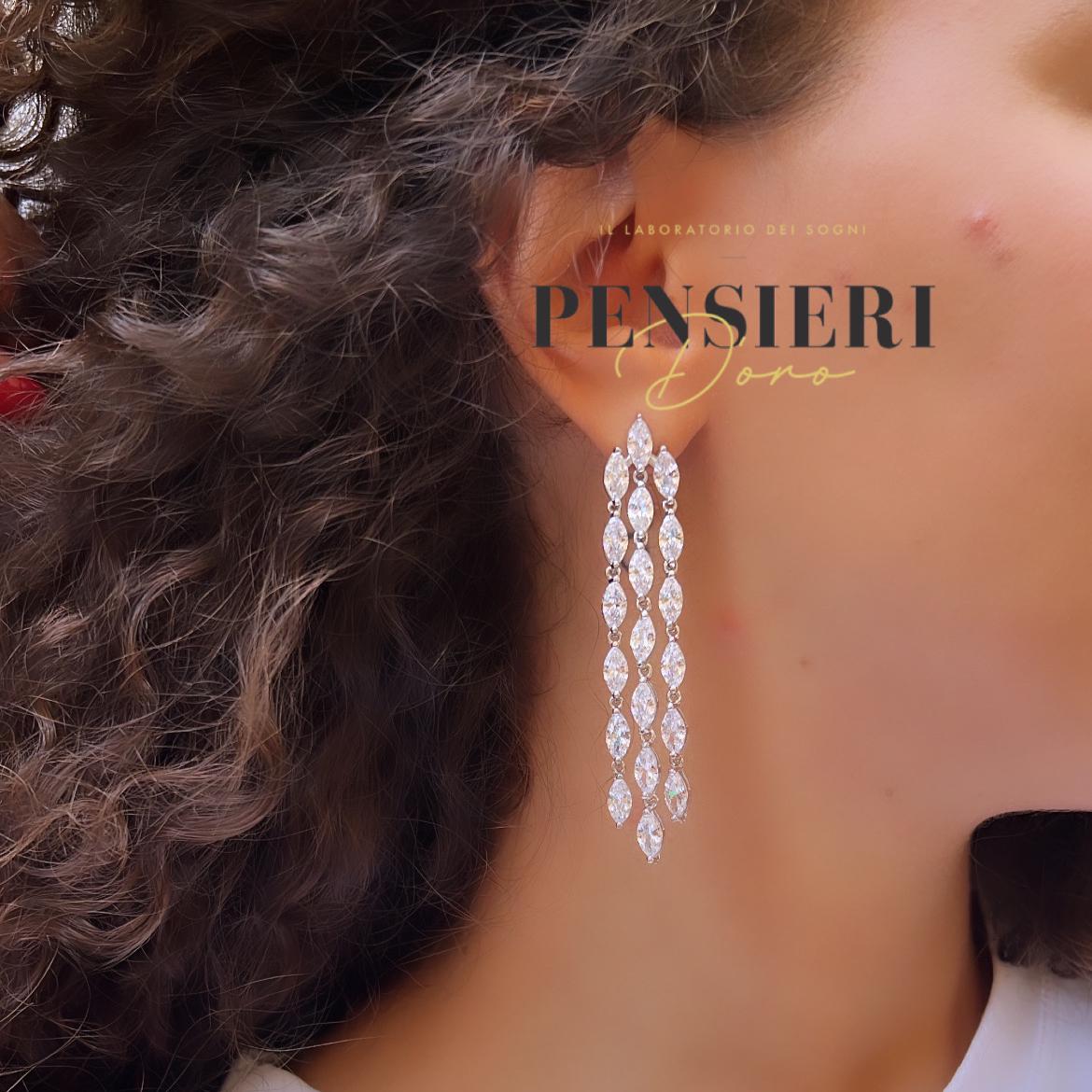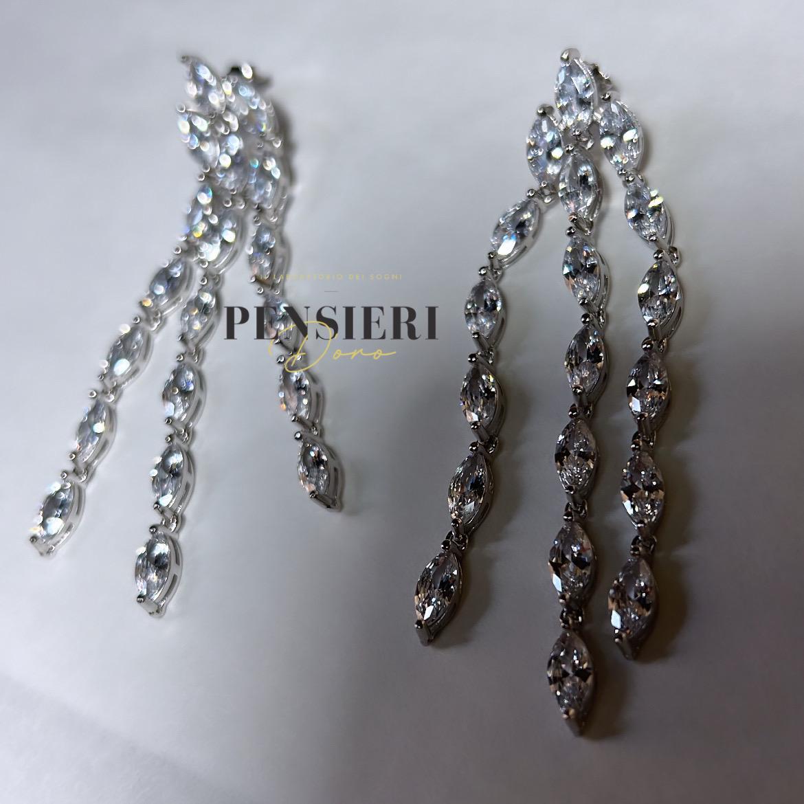 - Design: Cascata di zirconi con forma navetta, elegante e dinamica