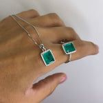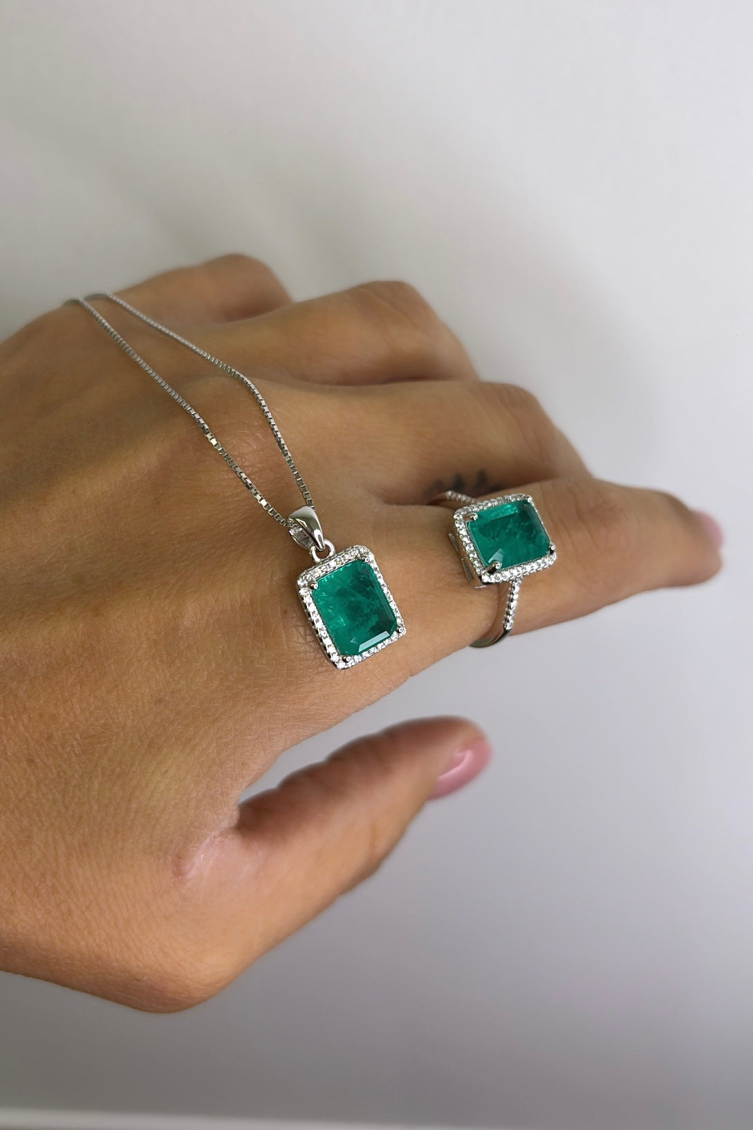 Realizzata in argento 925 e rifinita con zirconi ad alta brillantezza, la collezione è impreziosita da una splendida pietra smeraldo che dona un tocco raffinato e distintivo a ogni look.