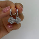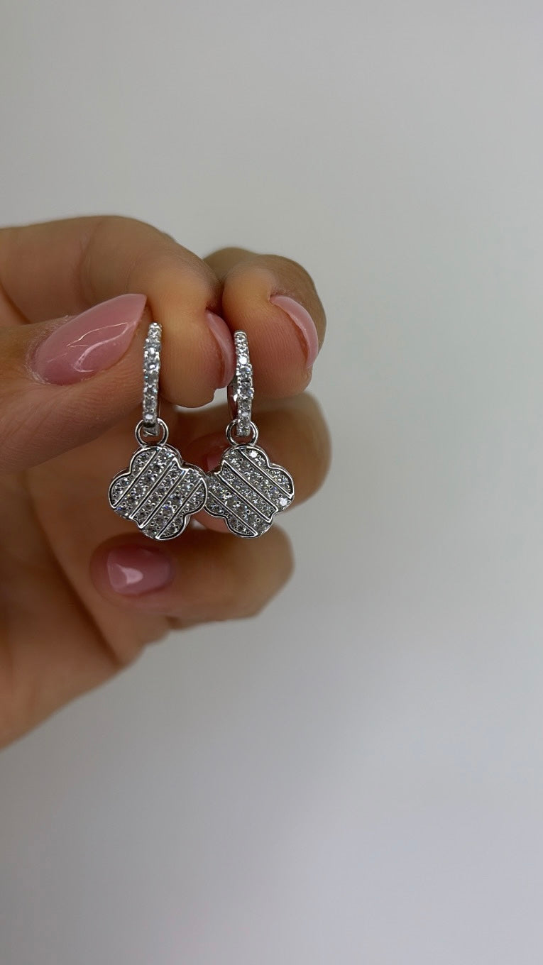 Orecchini: eleganti cerchietti tempestati di zirconi, con pendente floreale che dona movimento e luminosità al viso. Il prezzo si riferisce alla coppia.